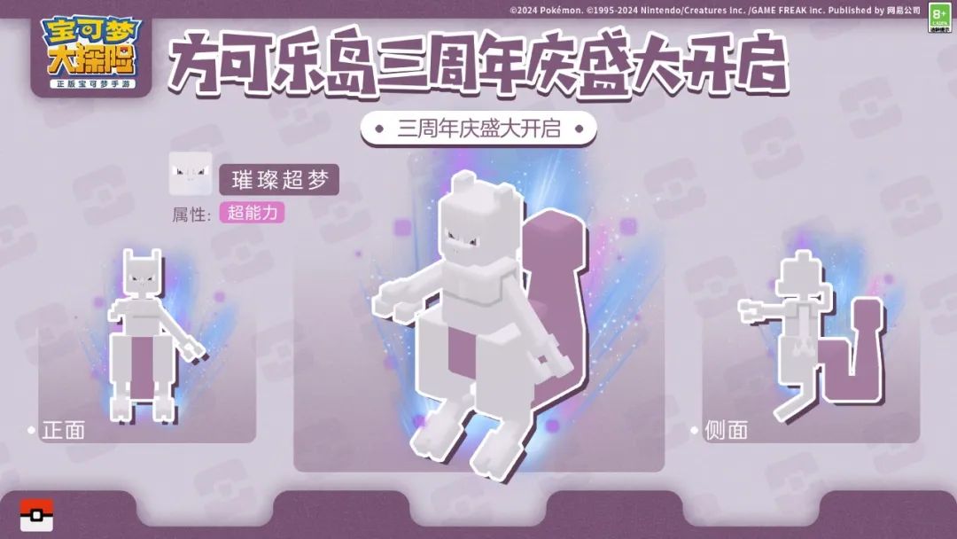 三周年庆典之际,我们将推出全新的小岛“心灵之岛”,并隆重向各位探险家介绍全新宝可梦璀璨超梦和达克莱伊,它们将与艾姆利多、由克希、亚克诺姆一同降临,为您带来前所未有的惊喜与挑战!在此,我们邀请您一同踏上这趟揭开神秘面纱、探寻奇幻之旅的全新征程。