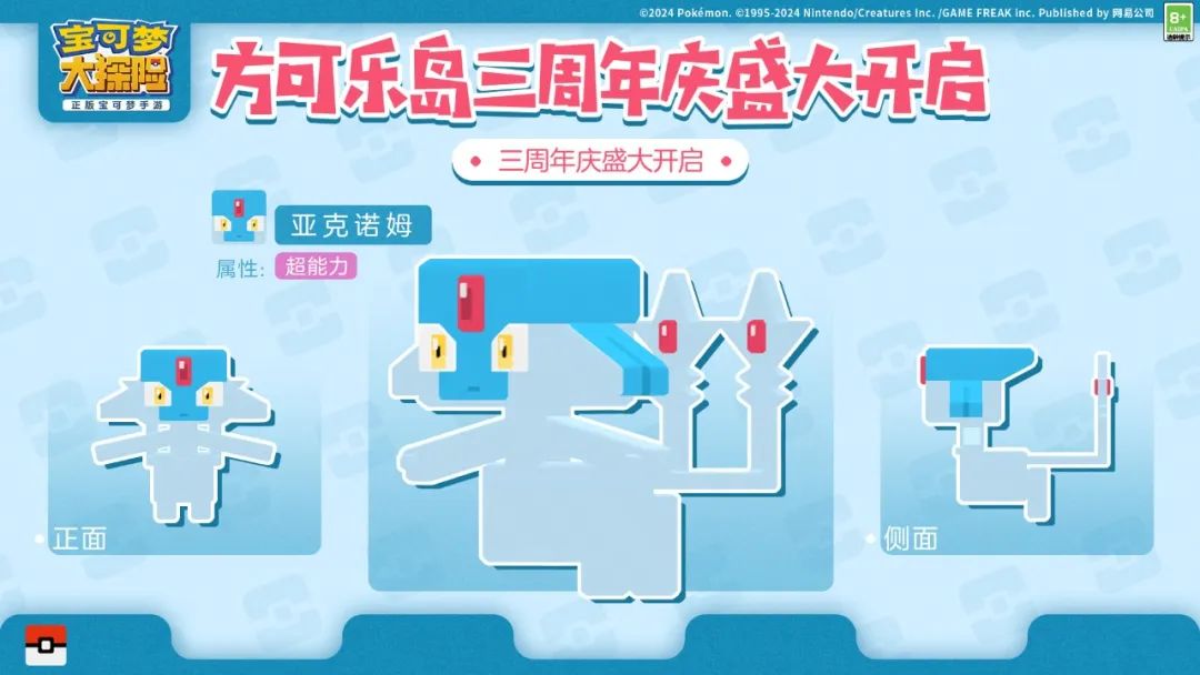 除了璀璨超梦、达克莱伊外,艾姆利多、由克希、亚克诺姆也将在三周年之际和各位探险家们见面!