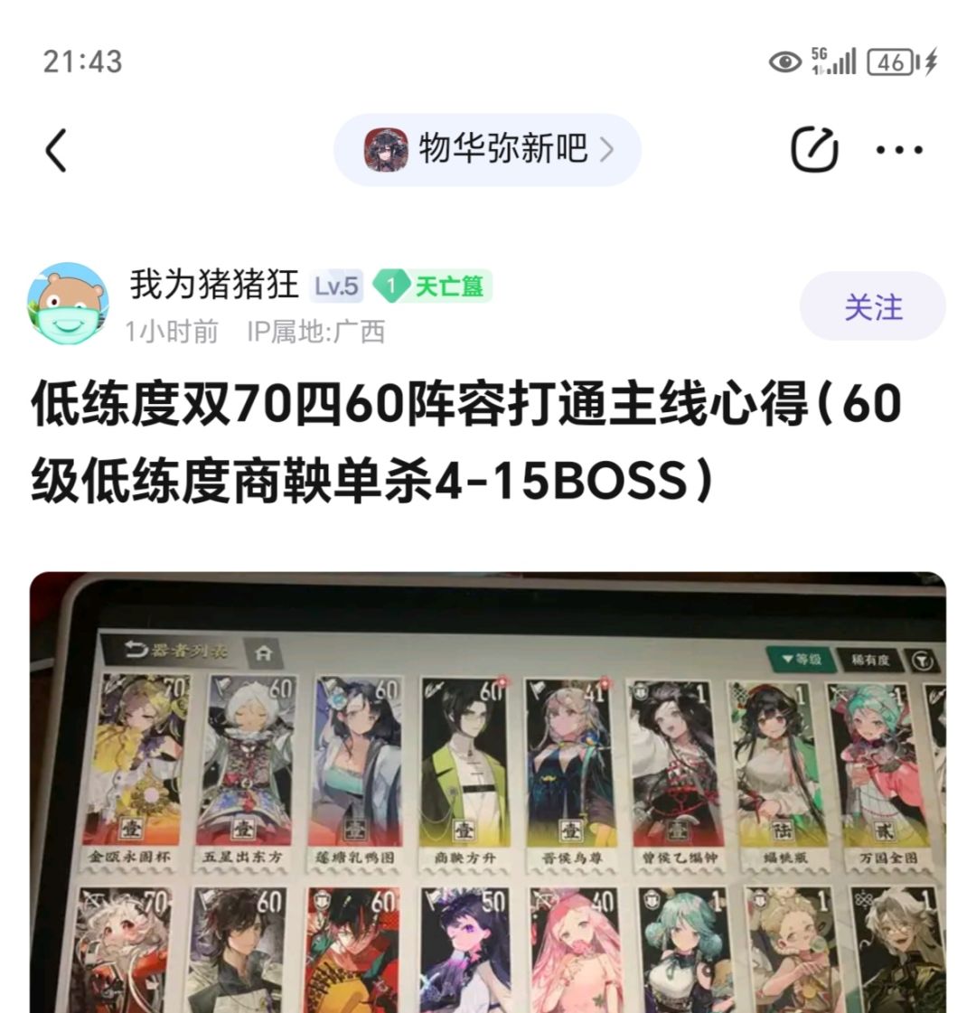 另外致知六商鞅,带熊猫竹剑,最优词条双生命加生命偷取,好处是武器无需升星省资源,词条利用率最高;带旧画刀,最优词条贯穿生命百分比生命偷取(也可以不要贯穿选择生命,但是没出真伤就要凹贯穿),好处是升满星后能延迟怪物开大,变相增加商鞅反击次数
