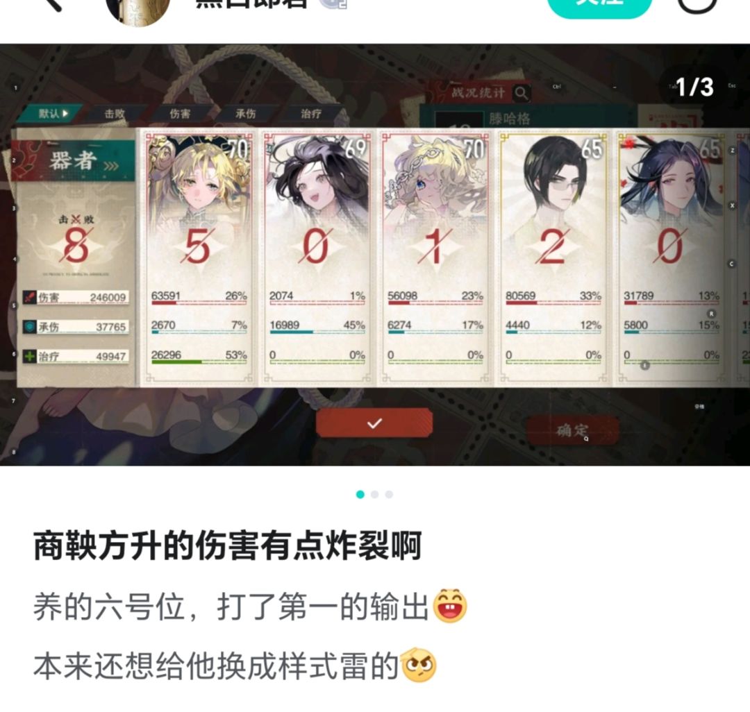 不得不说,商鞅方升(金卡轻锐)绝对是一匹真正的黑马,一个开服绝大部分up主和各大开服攻略节奏榜都没有提及的角色,在推图、打高难本和秒杀游戏后期数值怪上的体验,甚至比那些开服热议的T0轻锐好得多,商鞅方升也因此获得了“平民战神”、“投入性价比之王”、“越战神器”等一系列好评,下面放一下各大平台玩家对商鞅方升的评价截图让大伙开开眼