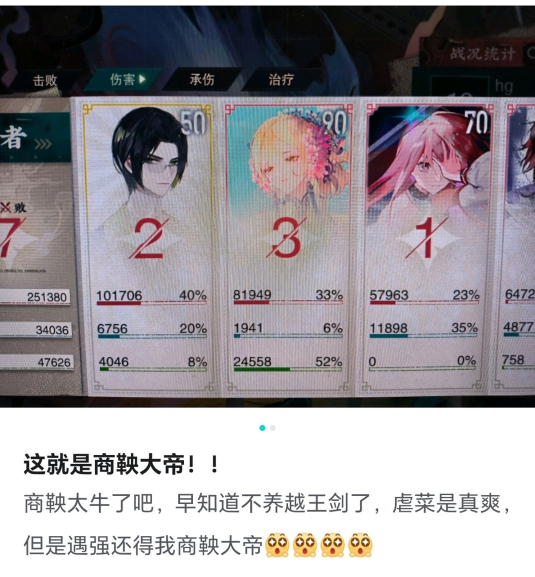 总结来说,拉到100级点满被动的商鞅,丢进怪堆里挨打,在第三回合就能秒掉场内任意一个怪,无论那个怪有多强。即使没点满被动,也就多一回合,第四回合秒怪,这个秒怪和真伤的机制就已经特别强势了。楼下还有商鞅秒怪视频链接~
