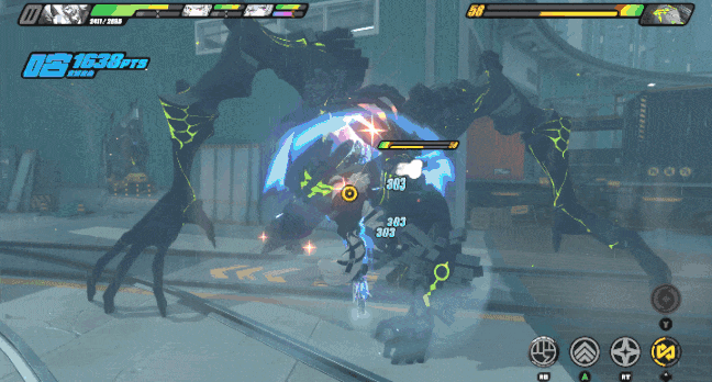 场上有一名玩家和三名玩家完全是两个画风的产物,不同的角色在多个角度连续进攻,连续弹刀。无论BOSS的机体性能多么强劲,也很难应付的了这种正义群殴。