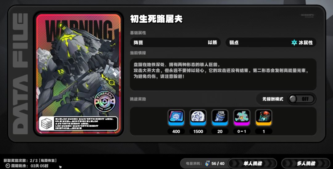 当玩家的绳匠等级达到25级时,在VR测试机的高危挑战周本里,赫然有着多人挑战的选择模式。