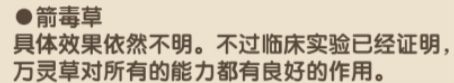 在耶鲁士人还没有培育出其他三种特效药草前,箭毒草一度成为了最热门的药草,不过后来巨人力士、费力药草、梦魇草出现后,箭毒草则沦为了庶民的药草,这就是后话了。