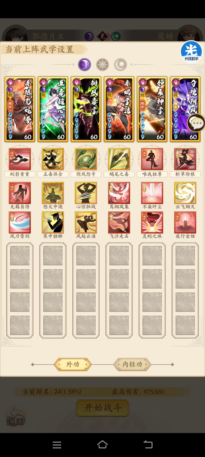 之前都是奇门阵容,因为自己是玩阴拳的,所以试着配了一下,词条最好是,遍体鳞伤,奔,阴凝冰坚,大家试试就行