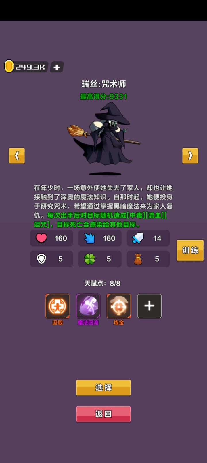 英雄建议选:咒术师瑞丝(每次攻击可以叠加毒或流血) 携带技能:汲取 魔法回流 炼金