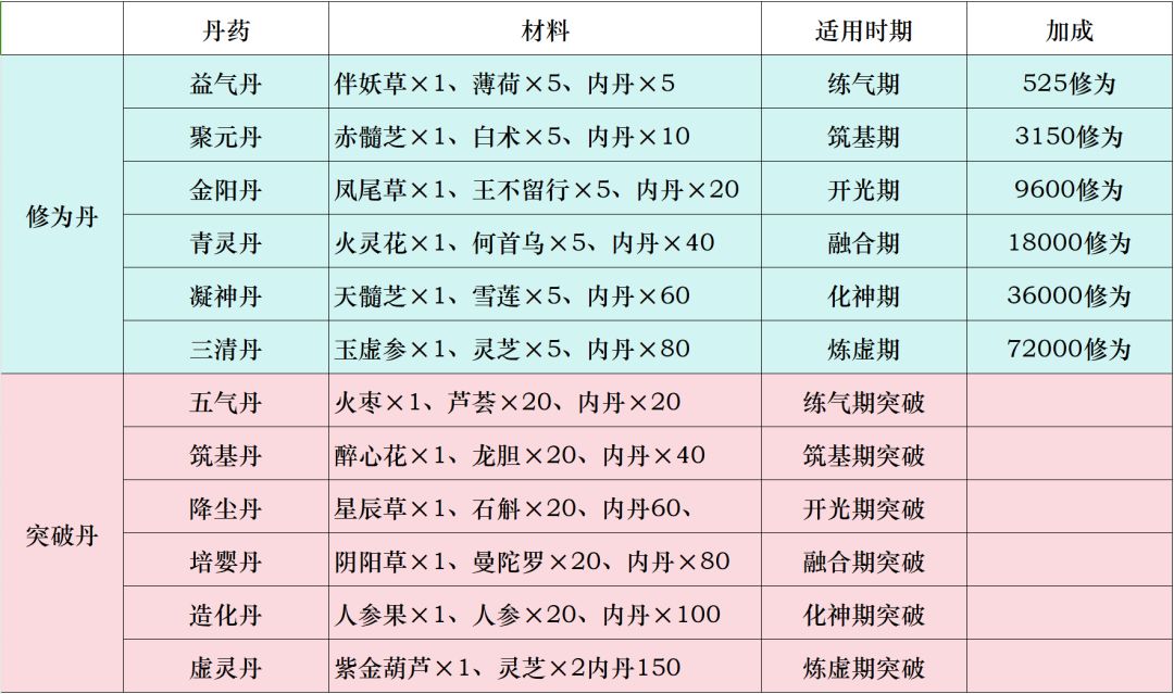 因为另外附上鱼干、虫干、丹药的制作材料,在开荒期没什么用,但中后期一定会用得到。