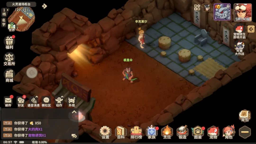 通关20层后,来到火精灵火山洞口,用任务奖励中的火魔法戒指解除封印,获得新宠物暴龙系-斑尼迪克。