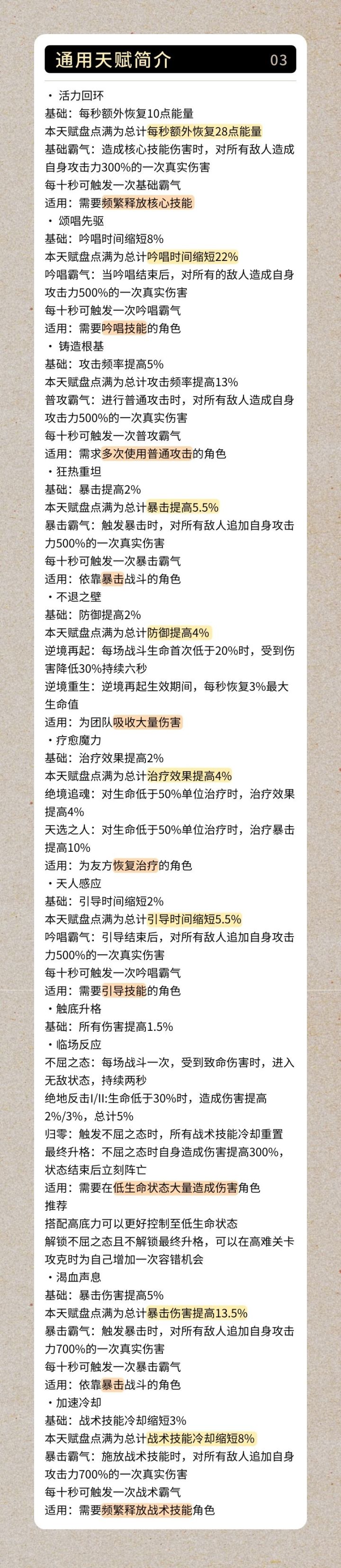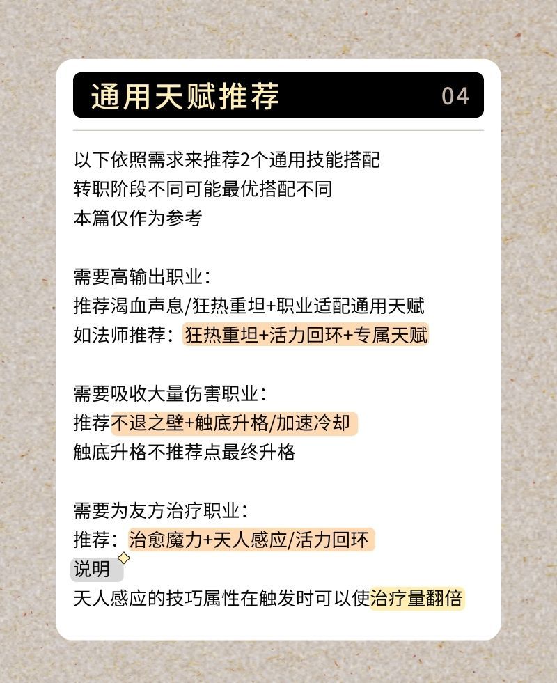 补充:天赋请优先携带专属天赋,再考虑副天赋的搭配