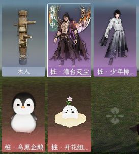 开放木桩替换外观功能,功能可对首领木桩、单人挑战木桩和随身木桩生效。现有外观包含:澹台灭尘、少年柳星闻、企鹅·乌黑、逆崽·开花组。