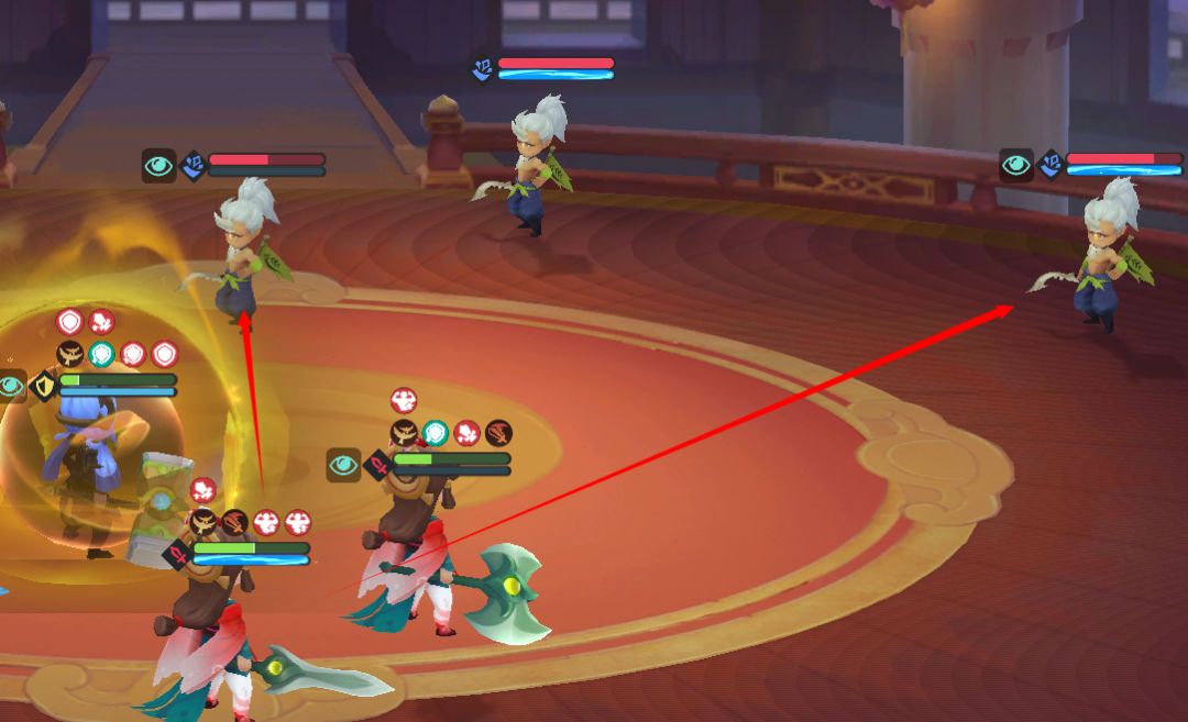 1)角色普通攻击会优先攻击同一列的敌方单位;若同一列无敌方单位时,角色会按照前中后排的顺序选取一位目标进行普通攻击。