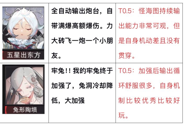 搬自B站up恶霸哆啦a猛,根据我自己游玩情况,感觉还是蛮客观的,大家可以参考一下这个图,另外我觉得输出里面,蝠桃瓶也能排t0.5,比东方略高