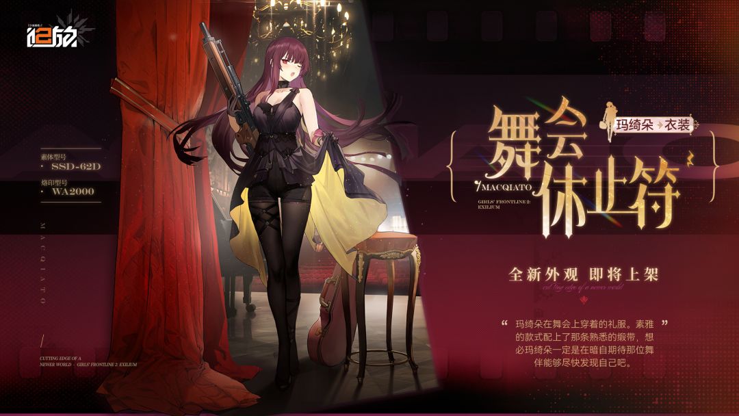 尊敬的指挥官,玛绮朵全新外观<衣装 · 舞会休止符>将于4月30日维护后上架商城,并常驻外观采购商城!