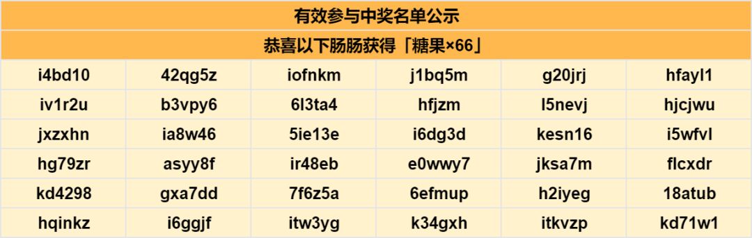 开奖啦!恭喜下列肠肠获得奖励~糖果奖励将会在14个工作日内发放到邮箱,请注意查收!