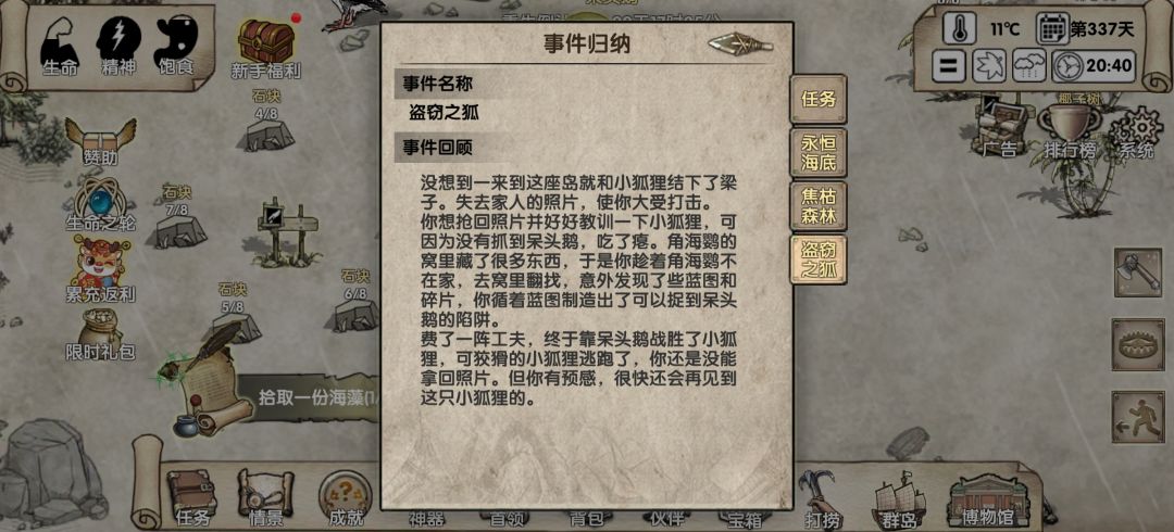 【任务-盗窃之狐】用弯竹陷阱得到呆头鹅-带入攻击狐狸🦊,即可成功