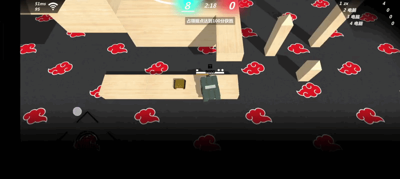 但是由于血包的判定体积比弹簧的判定大,这意味着你可以像下面这样,在吃到血包的瞬间回去,这样就不会被弹走了