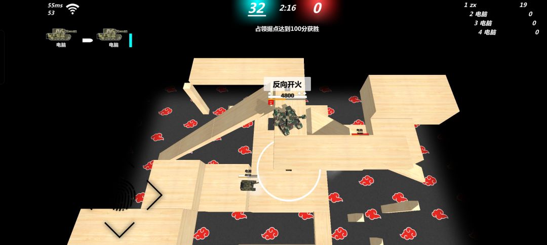 如果你对自己的技术不够自信,还可以尝试弹远一些。这个方法炮管较多的坦克比较适合↓
