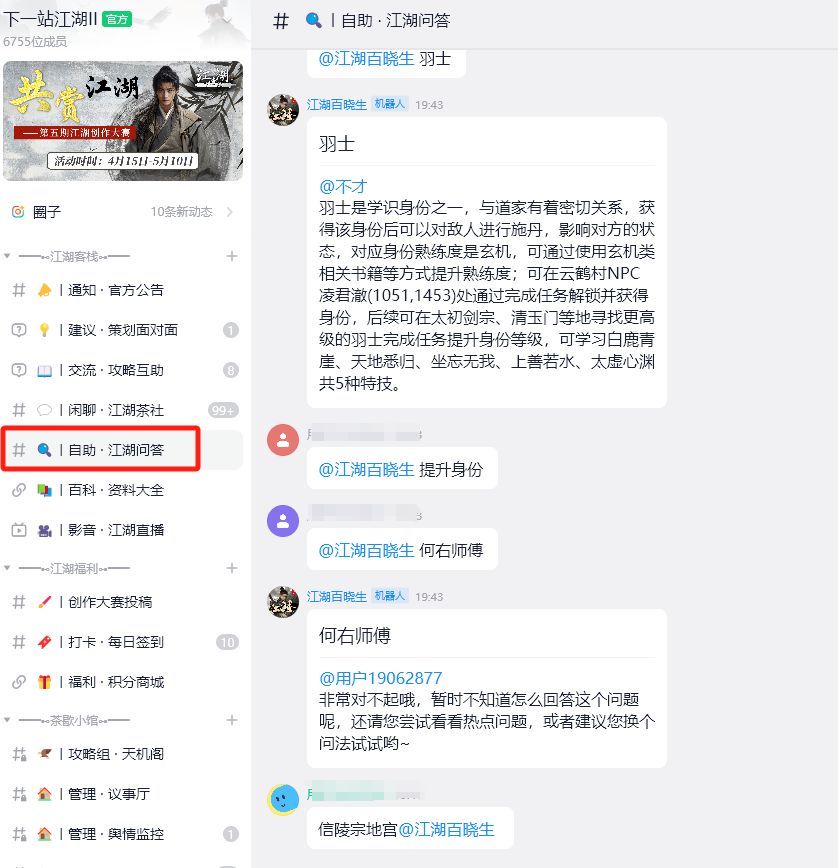 各位大侠也可以在我们攻略站——自助江湖问答频道,输入问题关键字@江湖百晓生,进行自助问答