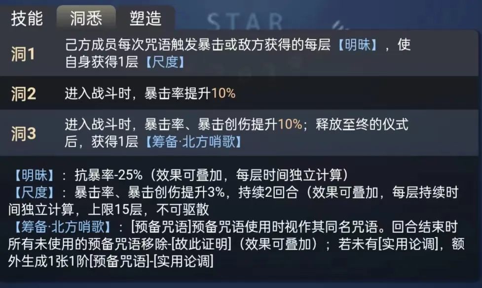 2.敌方每获得1层【明昧】就增加1层【尺度】(能够赋予敌方【明昧】的角色有牙仙、远旅、金蜜儿、玛蒂尔达,当然还有北方哨歌自己)