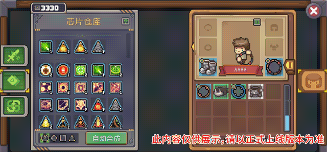 同时,芯片还分为多个等级,其中每2级又划分为1个稀有度,等级越高能够增加机械装备的属性值越高,不同稀有度的芯片特殊效果会有所不同。芯片可通过合成升级,三个同名同等级的芯片合成为下一等级的芯片,在芯片仓库即可进行自动合成。