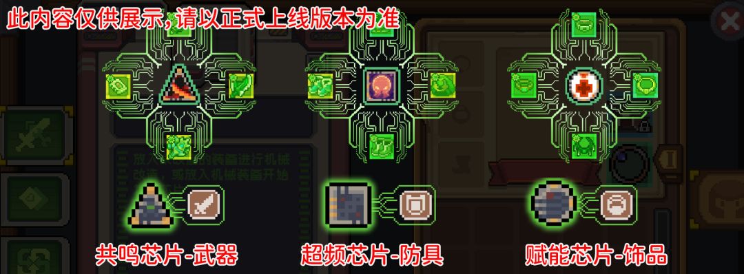 每种芯片都能增加机械装备的属性并附带特殊的效果。