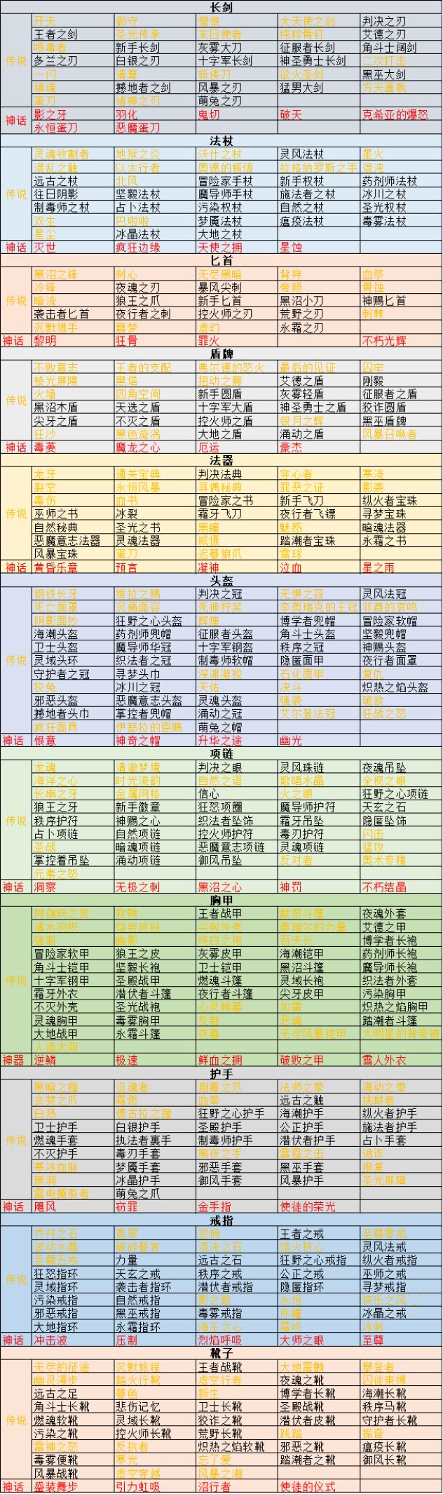 1.9.21版本全装备图鉴及萃取(依顺序排列)