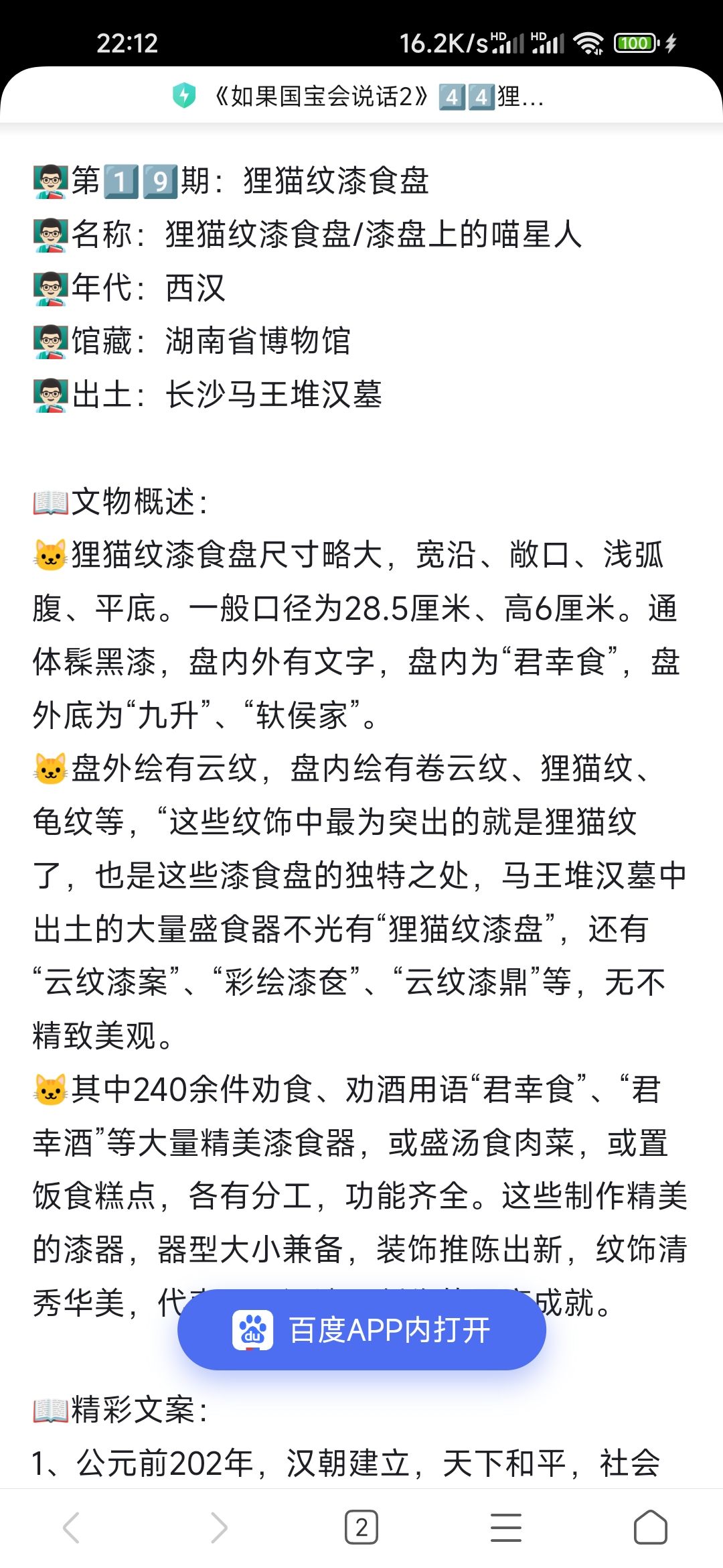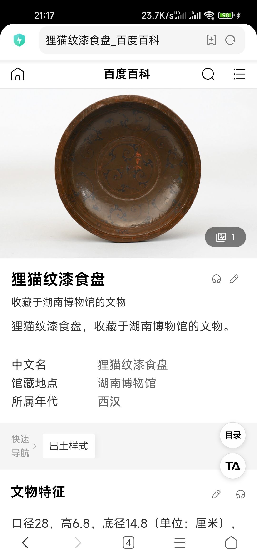 狸猫纹漆食盘的独特之处在于其内外绘制的纹饰。它通体髹黑漆,并在盘内外都写有文字。