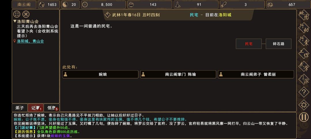 (8)前往 洛阳城→民宅(洛阳城西碎石路旁),触发过场剧情,完成任务。