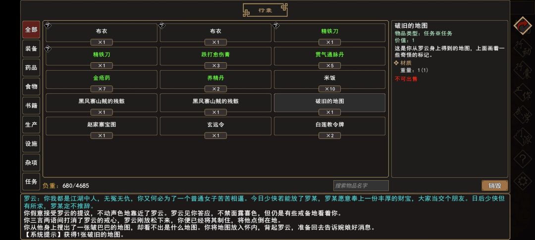 (7)触发过场剧情,获得:[破旧的地图※任务]。