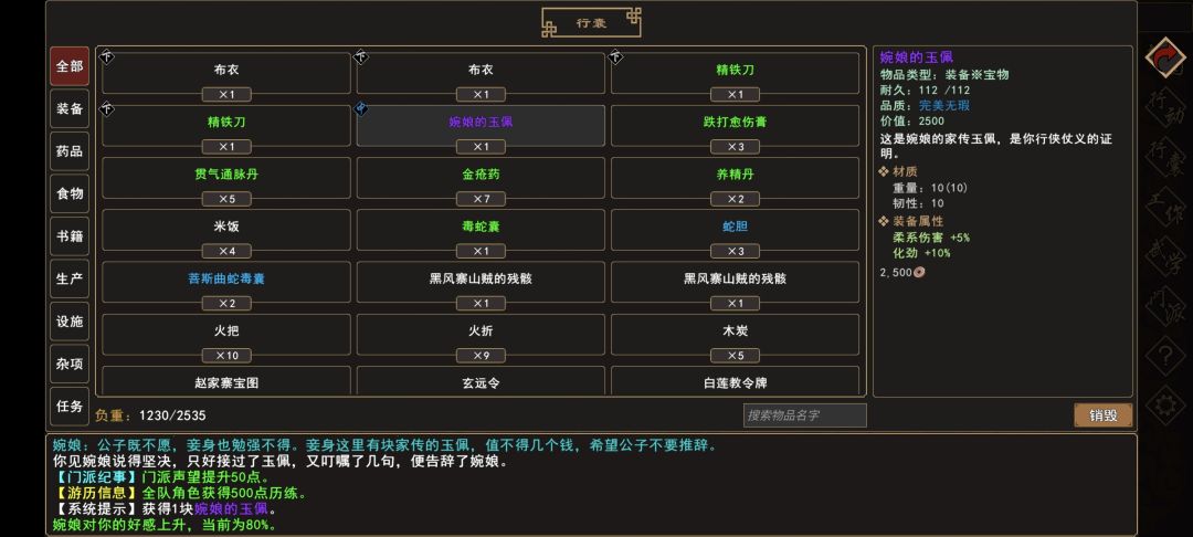 (4)[婉娘的玉佩※装备/宝物]×1。