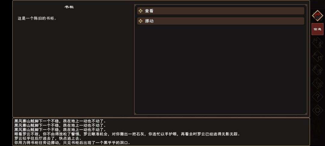 (5)前往 归云山→卧室→书柜,选择挪动,出现密道入口。