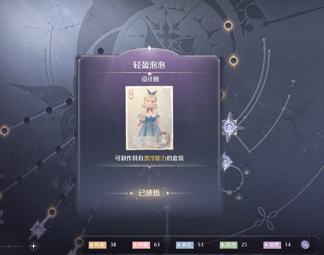 在日常交互当中的部分技能【俗称道具】学会之后是需要切换的,比如清洁动物丨钓鱼丨捕昆虫。制作服装的材料大部分也都是大世界里面采集的,做任务逛地图的时候顺便采一采基本也就够了。制作服装之前是需要不同个数的道具【奇想星】解锁,你可以理解为技能点,这个东西也是分布在大世界里面的,需要去寻找。