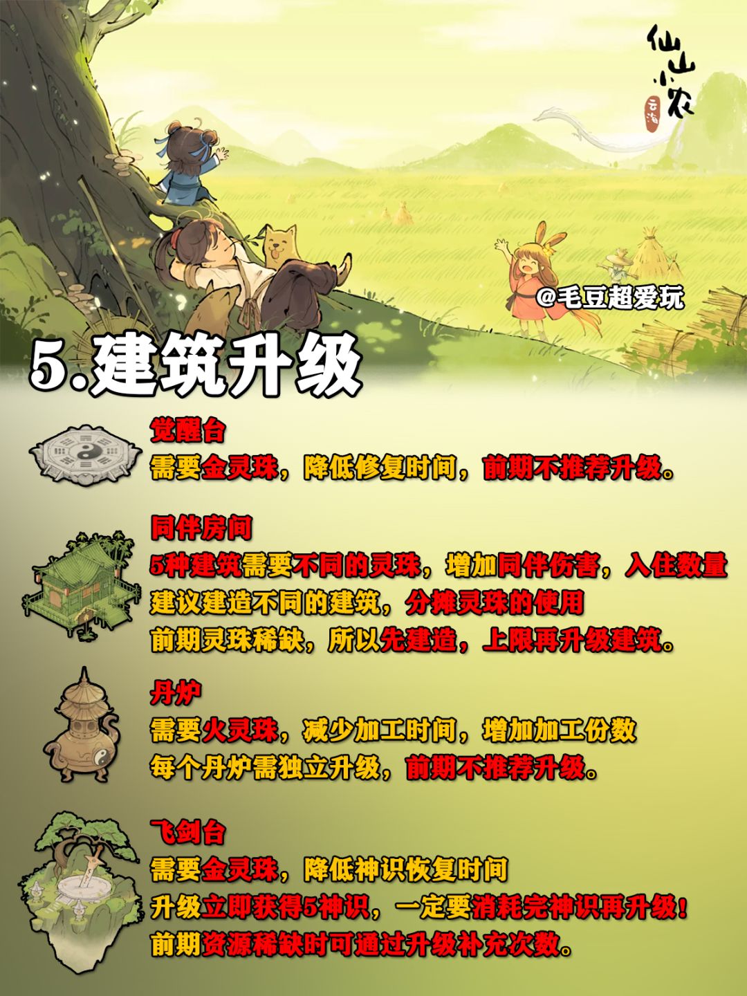 同伴小屋推荐建造不同的类别,分摊灵珠的使用,小屋建造上限后再升级建筑。