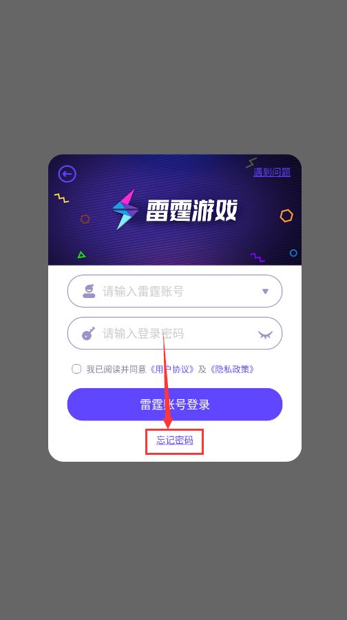 很多朋友长时间没有登录账号,或者一直使用短信验证码登录登录账号的话,可能会忘记密码(没有密码),这个时候需要找回密码操作,首先可以在账号登录界面点击雷霆账密登录的选项,然后跳转到账号密码输入界面,下方有个忘记密码的选项,直接点击该选项可以进行密码找回操作;