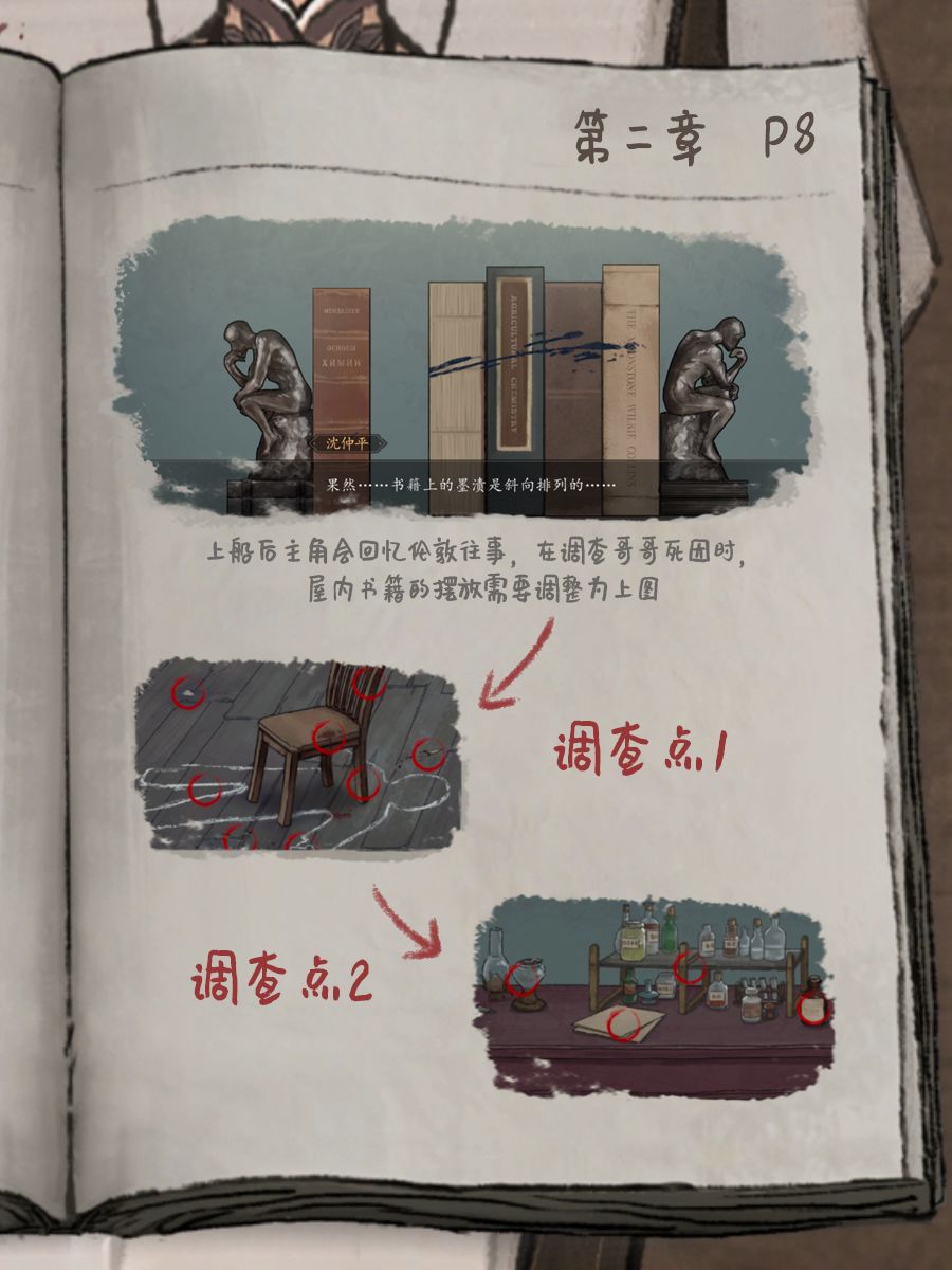 第二章剧情紧接着第一章,我们来到罗世文家中先和所有可交互物件进行交互。全部交互后即可解锁衣柜,相关细节可见图P1。