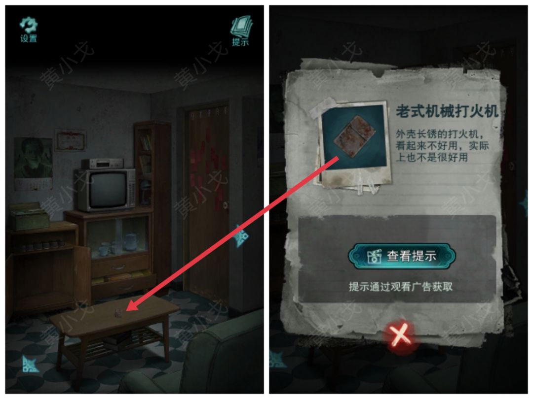 22.(404客厅)点击获取茶几上的【老式机械打火机】