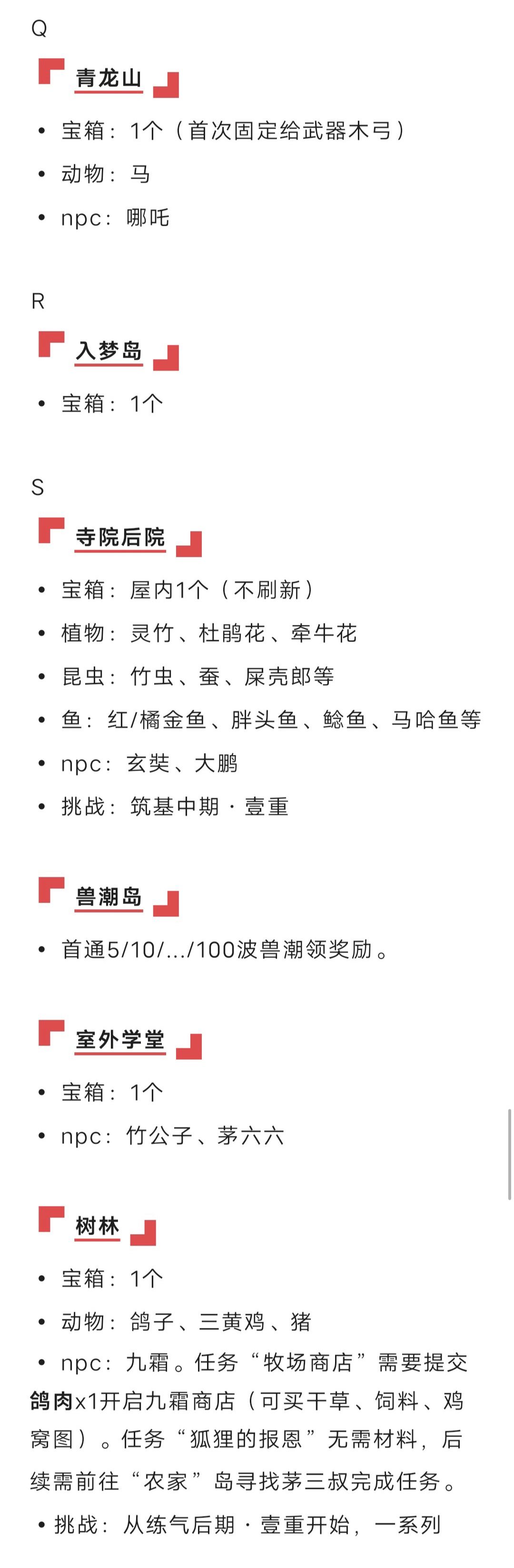 P8:Q R S【青龙山】【入梦岛】【寺院后院】【兽潮岛】【室外学堂】【树林】