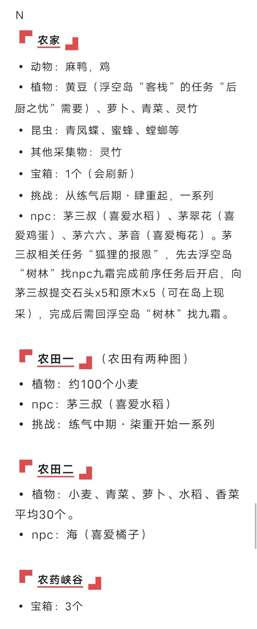 目前NPC长支线任务共有5个,分布在客栈、香料店、菊岛、乱空岛4个岛屿,建议提前囤好资源再进入。