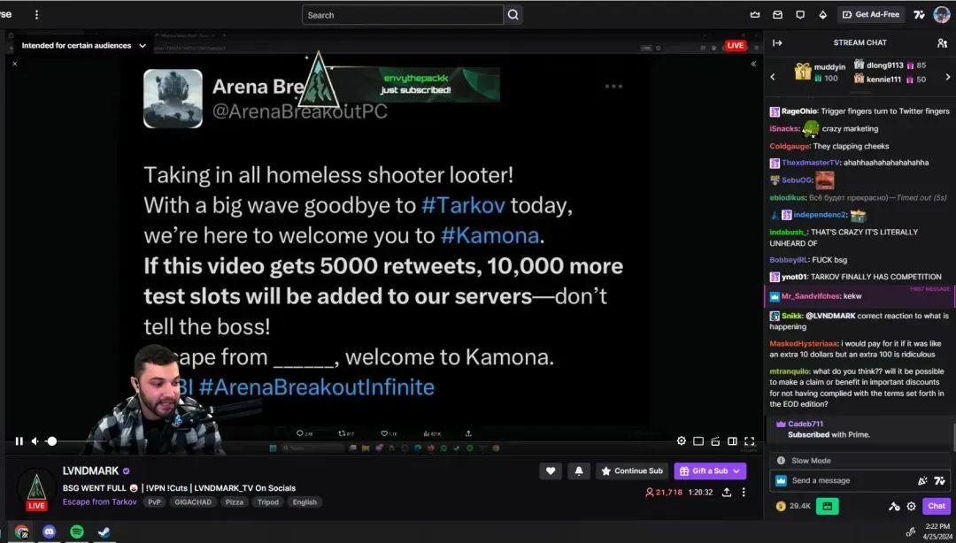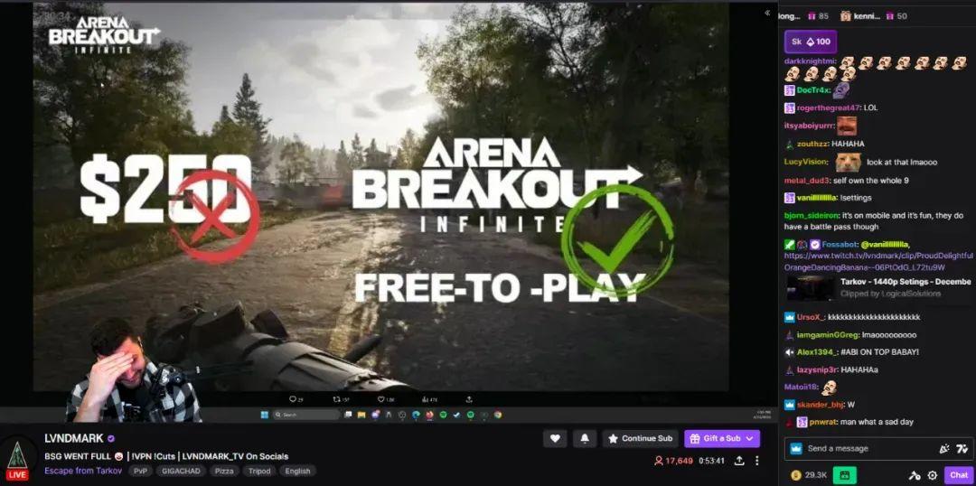甚至,目前Twitch上原来的《逃离塔科夫》主播已经集体倒戈 ,直播公开支持《暗区突围》端游海外版。