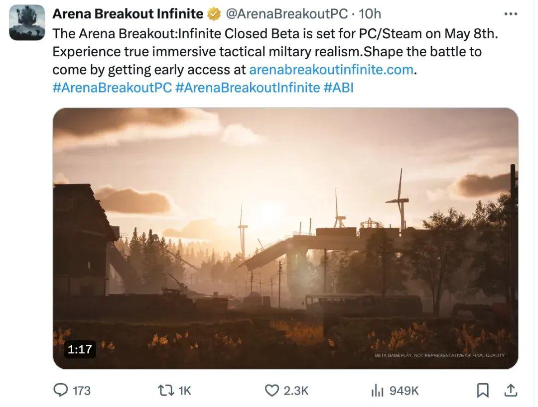 4月25日,《暗区突围》端游海外版的官推,发布了游戏的4K实机图,并在次日公布了海外版即将在5月8日开启首测的信息。