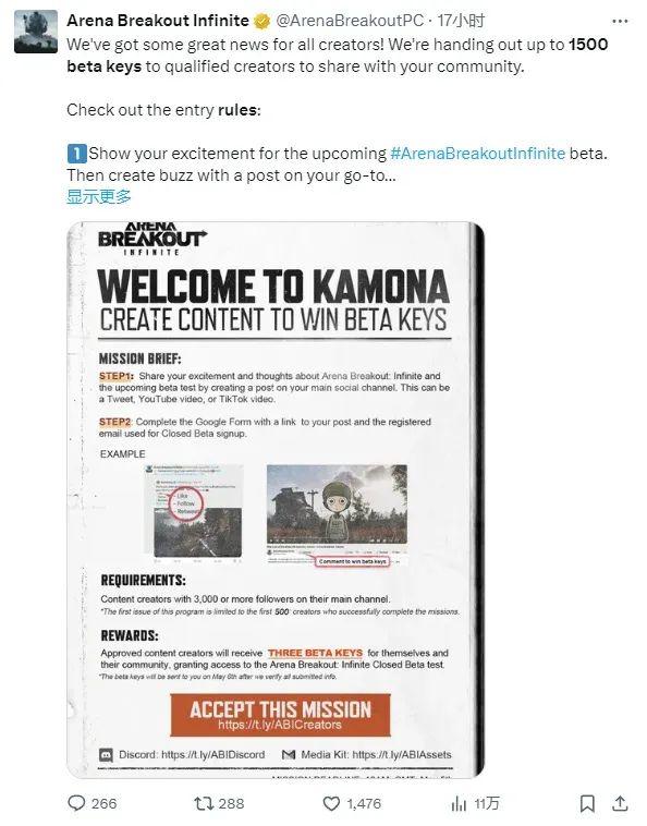 而且,《暗区突围》端游海外版也是一点也没闲着,在热度最高时,除了欢迎塔科夫普通玩家以外,官方也发布了海外创作者招募的信息,表示向内容创作者敞开大门。