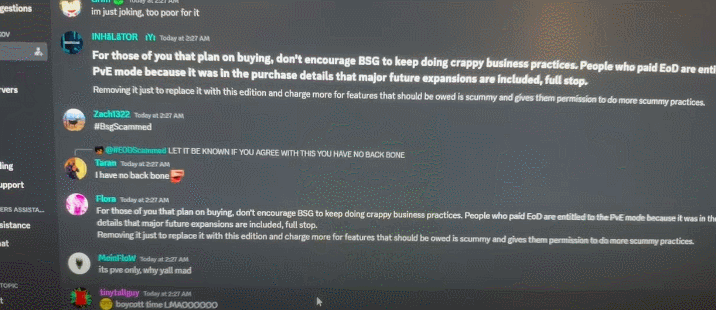 而在游戏官方Discord频道里,玩家们则不断用同一段话刷屏,表达自己的失望: