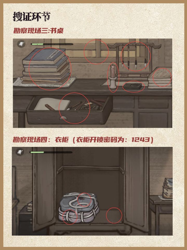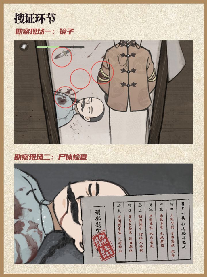 进入搜证环节⬇️1.勘察现场一:镜子(共4处,可对照图2检验结果)