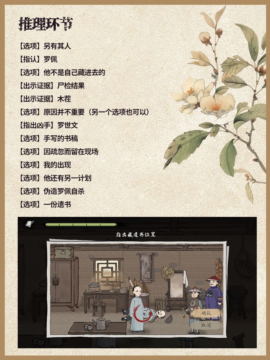 12、若原计划是伪造自杀,消失的书稿中就可能藏有?选择【一份遗书】