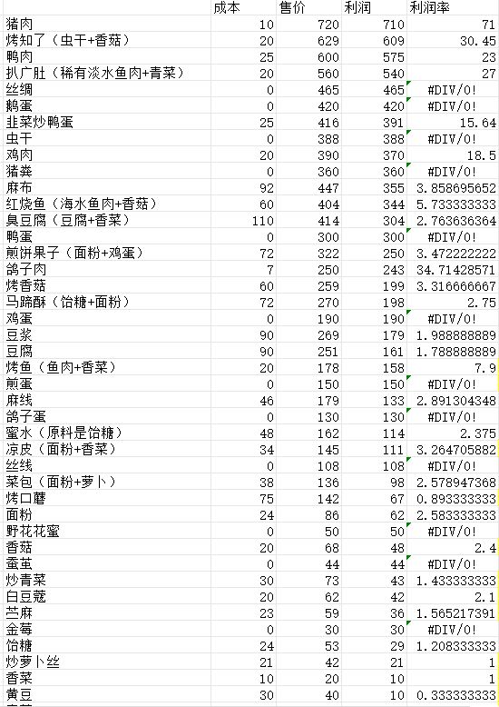 其实这张表的作用就是,在你种水果之余,提醒你备点什么菜,因为水果时间不是很长嘛,在水果的时间段里面,你的磨房和篝火也能同时运行