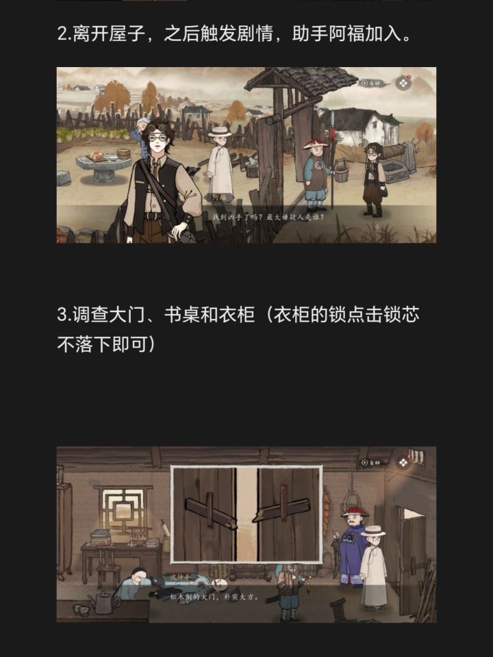 2.离开屋子,之后触发剧情,助手阿福加入。