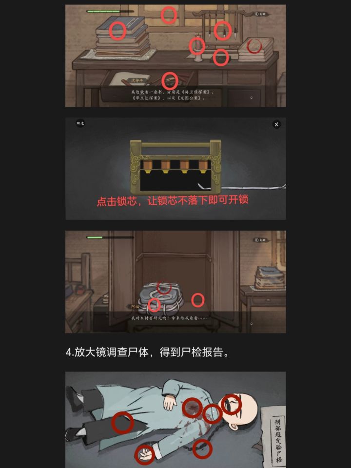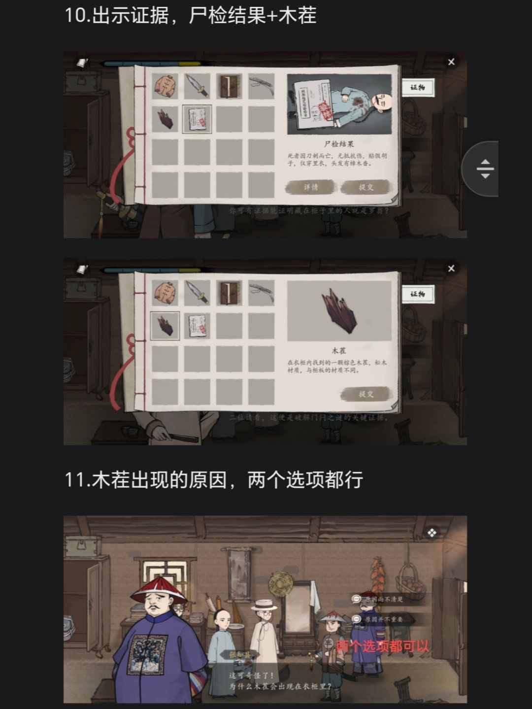 1.找到镜子调查画圈部分,选择有遮挡物被挪开了,出示证据血衣证明清白