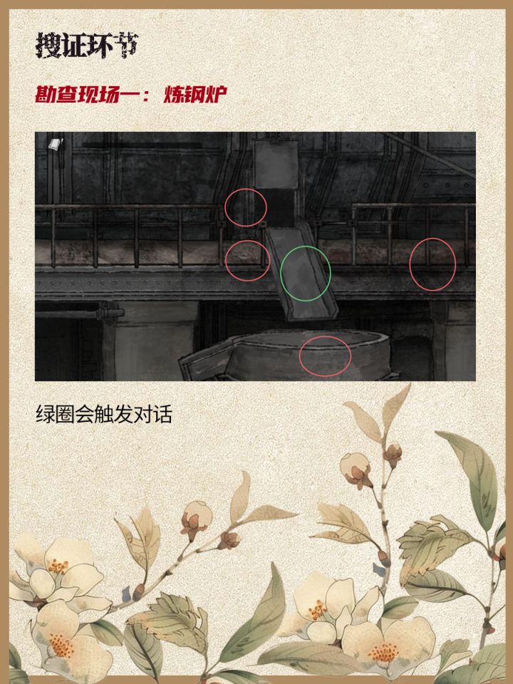 进入搜证环节⬇1. 与巫大娘对话,调查封锁线、二号钢水包