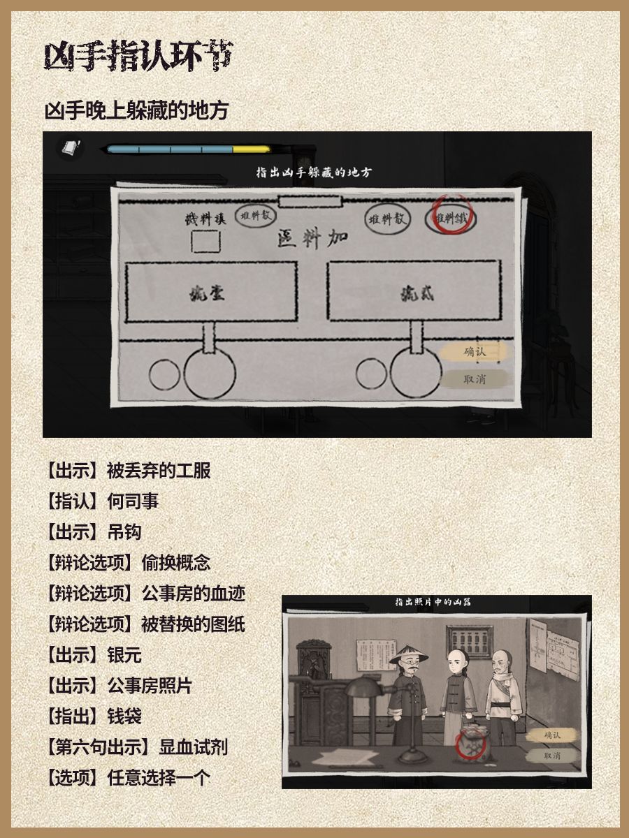 9. 与古巡丁对话,再回到加料区,打开送料门,过完全部疑点思考自动进入推理