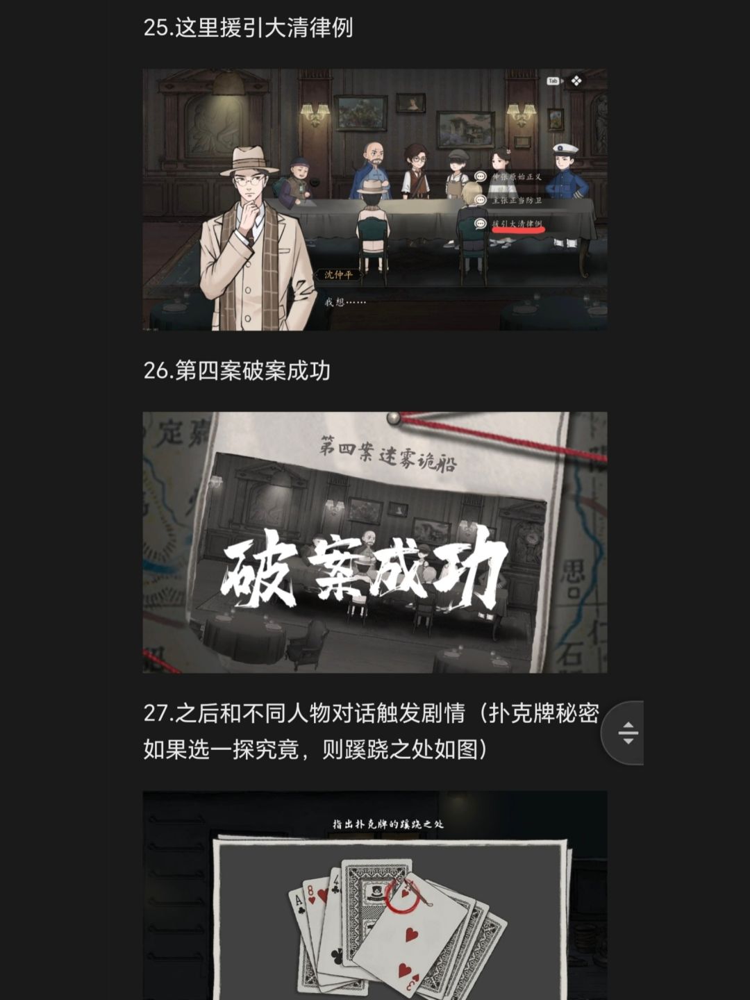 27.之后和不同人物对话触发剧情(扑克牌秘密如果选一探究竟,则蹊跷之处如图)